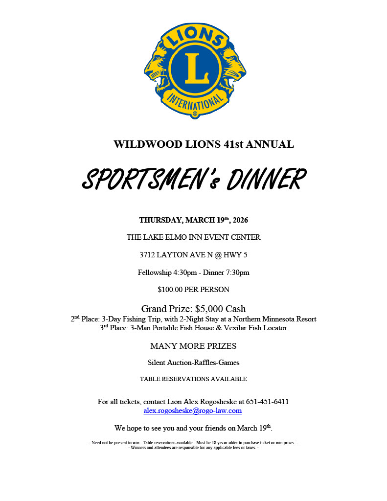 The Wildwood Lions Club is having its 41st Annual Sportsman Dinner